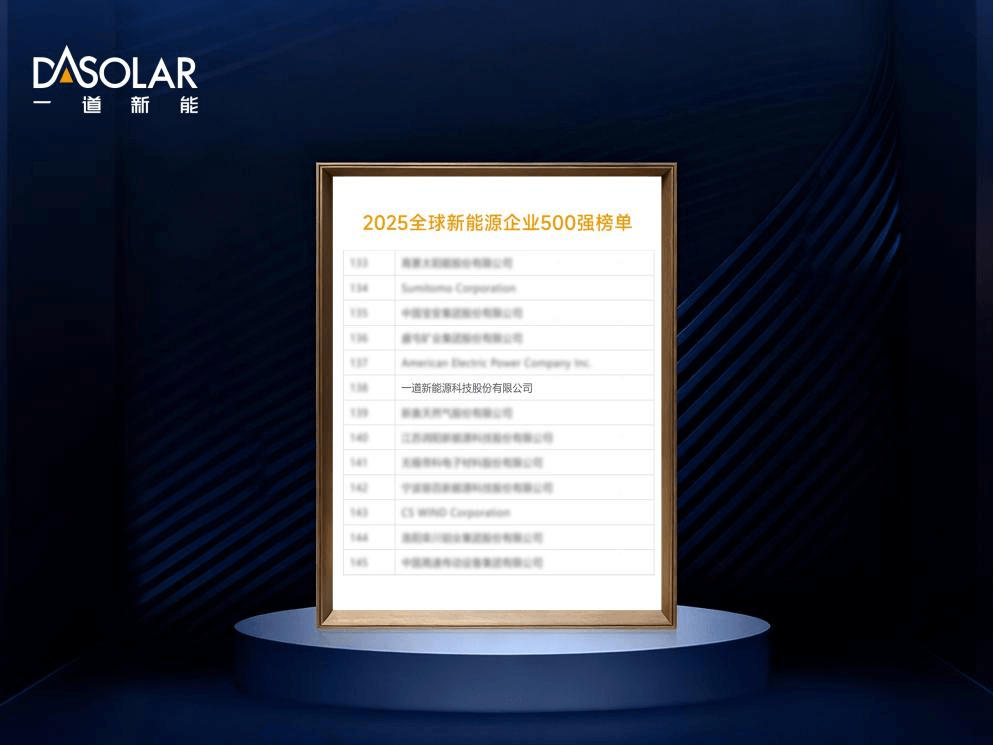 近日,2025年太原低碳能源發展論壇發布了“全球新能源企業500強”榜單,一道新能憑借硬核技術、“光伏+”落地方案與全球化布局的綜合實力成功蟬聯,在行業調整周期實現穩健發展。作為N型技術引領者,公司以“一主三翼”技術戰略為內核,全場景解決方案為支撐,ESG全球化為發展路徑,持續書寫光伏產業高質量發展答卷。?